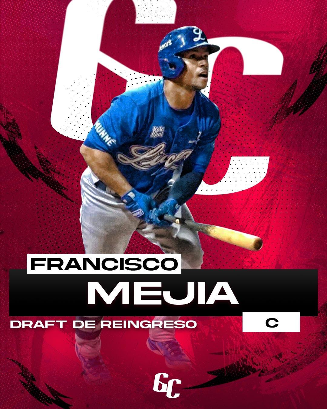 La primera escogencia correspondió al receptor Francisco Mejía, jugador de 30 años, nativo de Baní. Mejía llega para fortalecer la ofensiva y el manejo del cuerpo de lanzadores. En la temporada 2025 con los Tigres del Licey, el receptor ambidiestro registró promedio de .310, con un cuadrangular, 11 carreras remolcadas y 10 dobles.